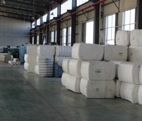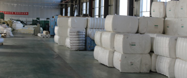 引進國外水刺法生產流水線,重型劍桿織布機臺,整形、熱熔、縫制、設備配套齊全。
