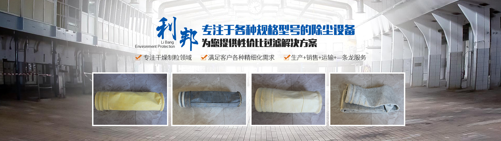 江蘇利邦環保科技有限公司是一家專業生產、經營和配套除塵設備的綜合型企業,為適應新形勢環保需求,公司連續性地研制、改制、開發新型產品,從而為工礦企業做到合格產品,受到企業和環保部門的好評。